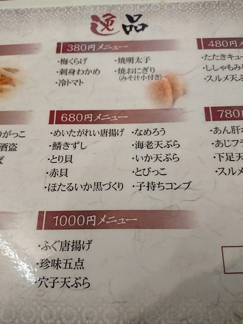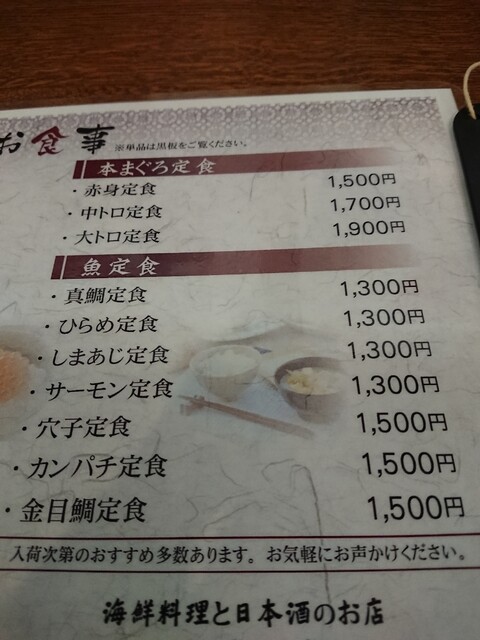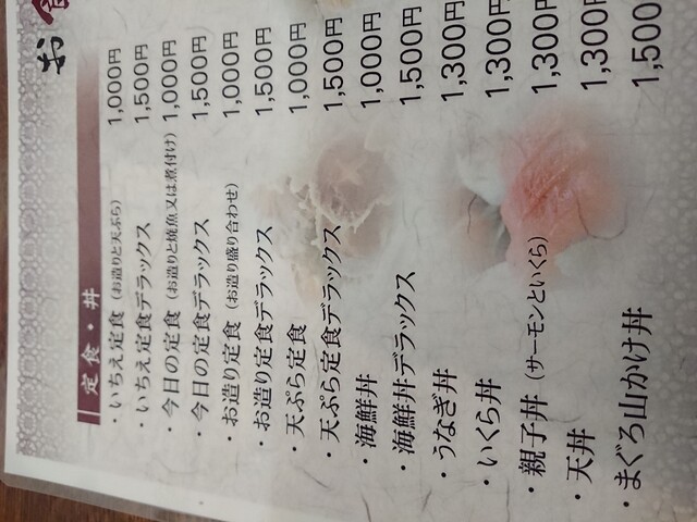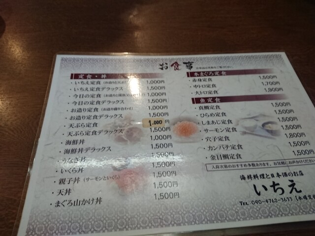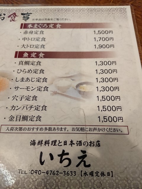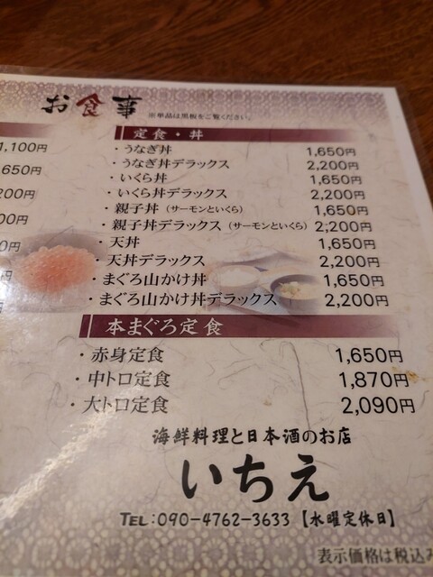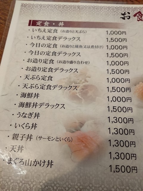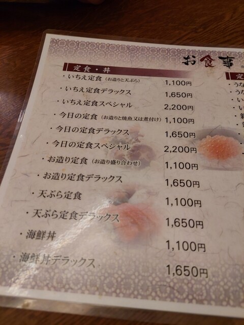 いちえ定食デラックス1650円、今日の定食デラックス1650円、今日の定食スペシャル2200円をオーダー。
