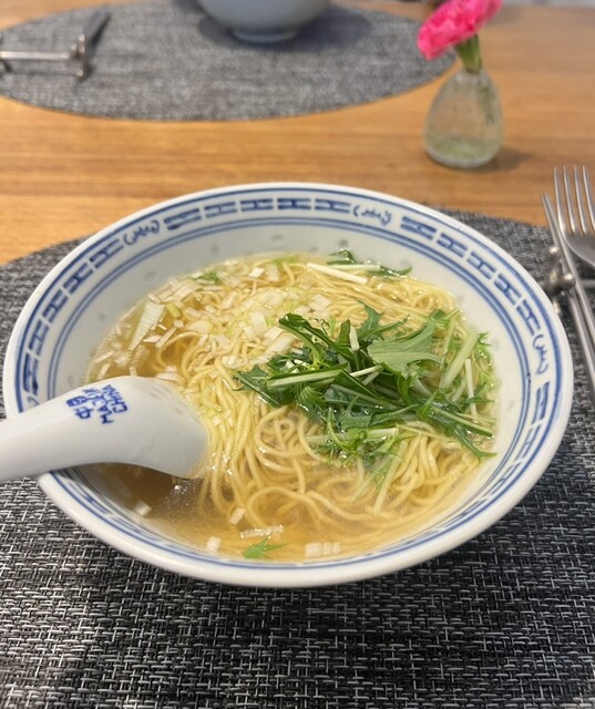 海鮮料理は春ということでサワラにタケノコもあってネギではなく赤黄緑と色合いのいい油淋ソースもよかった。そして古老肉なんて字が似合わないなんだかかっこいい酢豚。フォークとナイフでカットして食べる。ソースがバルサミコ酢を煮詰めたような甘酸っぱさで美味しい。この後の汁そばでさっぱりしてデザートもあってコスパよくて満足度はかなり高い。