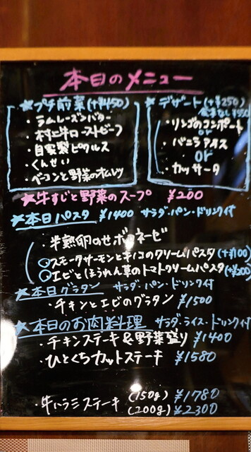 こちらのシェフ、新潟駅の近くの対面の鉄板で焼くステーキが有名なホテルが出だしのようなので、お店のウリもお肉料理のようです。