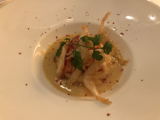 身も皮もぷるぷる。底部に蟹の身とポワローネギがクリームで和えられていてよい。