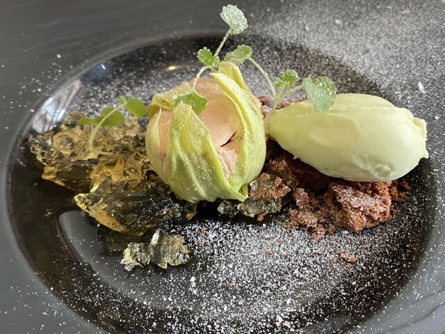 おそらく生涯初鳩。クセのなく肉の旨みが直にくる感じ。食べる前から「ソース美味しいですよ」とシェフが仰っていた通り、風味豊かな旨みと甘みがあった。