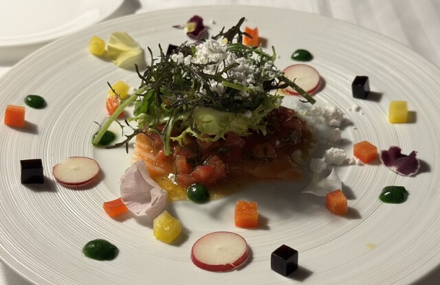 [1]焼き茄子のムースとサーモンのスモークタルタル