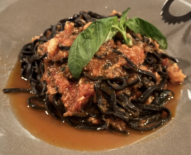 ○ズワイガニのトマトソース(イカ墨のタリオリーニ) ¥1,980