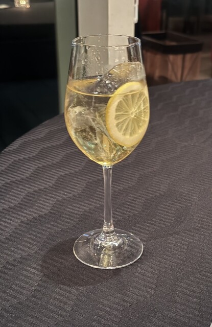 ドリンクは、ウェルカムドリンクのシャンパン、食事中の水、デザート時のコーヒーのみで足りたので¥0