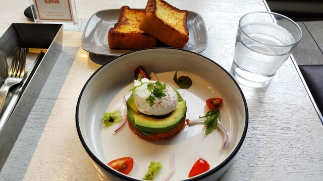 メインディッシュ(サーモンのタルタルとアボカドとポーチドエッグ ディルソース)
