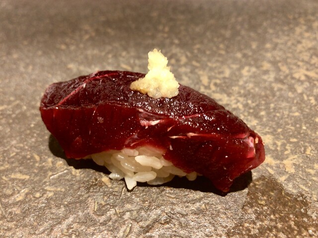 近所のお寿司屋さん。先月に続いて連ちゃんになってしまいました。。カウンターは満席でした。スタートに時間差がある中、それぞれの進み具合に合わせてタイミング良く肴が出てきます。素晴らしいです。先付けは高知のとろーり旨なすという名の白茄子。確かにトロリとして出汁の旨味を吸ってよいお味。前回お願いしていた醸人九平治純米大吟醸とよく合います。醸人、旨味の深いお米とお水の味わいを楽しみました。五島の岩牡蠣を目の前で殻を剥いて出してくれました。海のミルク、爽やかな味で幸福でした。ひろ海さんはいつも天然の本鮪ですが、今回は銚子産、酸味と旨味が絶妙なバランスでとても爽やかな味わいは絶品でした。ご馳走様でした。また次が楽しみです。