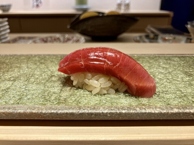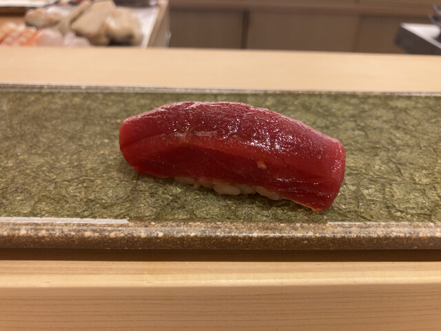 年末来れなかったので、珍しく埋まっていなかった土曜日のランチタイムに参りました。お店は住宅街の一角で通りから少し奥まった所にあり、和モダンな外観、白木の引戸を開けて店内に入ると白木のカウンター越しに大将が出迎えてくれます。日常から特別な凛とした空間になるこの切り替わる雰囲気が好きです。おつまみと握りのコースをお願いしました。いただいたモノは写真の通りです。ぬる燗をちびちびやりながらいつも丁寧で繊細なおつまみを楽しみました。おすすめで赤海鼠も出していただきました。上品でコリコリした食感とお酒の相性にほくそ笑んでしまいます。鰊は生を炊いたもので、しかも骨切りされているとのことでフワッとした食感は大変素晴らしい。こういう所が好きなんです。さて握りですが、ランチなのでおつまみの多い夜と比べてシャリは多めにしているそうです。そういう気遣いもいいです。今日の握りもどれも繊細さが際立っていたと思います。脂の乗った小肌、炙った金目鯛、塩でいただく細魚などうっとりです。戸井産の本鮪は香りというか酸味と赤身の三味というか何か特別な味がします。大間の鮪と同じ津軽海峡産、たまりません。魚の目利きや熟成の見極めなど大将と話し込んでしまい長居してしまいました。ご馳走様でした。次回も楽しみです。