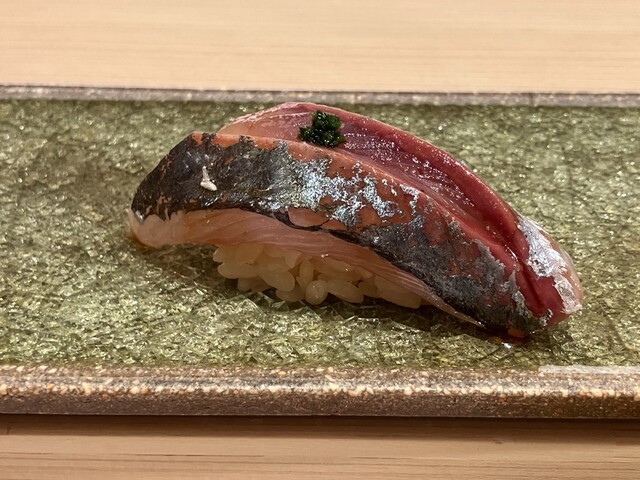 4回目。インスタで「岩手県の国産松茸入りました」を見て、前回は新子を逃したので、早速予約しました。カワハギと肝のお刺身、焼いた藁の香りの和辛子でいただく鰆や、生鰊と蕪の炊き合わせなど、いつも楽しいおつまみと、原酒・無濾過の日本酒との相性を堪能しました。さて、松茸の土瓶蒸しですが、松茸にしかない香りと味わい、日本人で良かったと思います。松茸の時期は限られるので予約はお早めに。お鮨は、塩釜産本マグロ、金目鯛そして大好物の車海老など(写真の他に、トロ沢巻と玉子焼き)、いつも丁寧で繊細な仕事の握りを楽しませていただきました。秋刀魚の握りは、走りの前回と脂の乗った今回のものと、時期の違いがよくわかりました。同じネタを時期の違いで楽しむのもいいですね。ごちそう様でした。