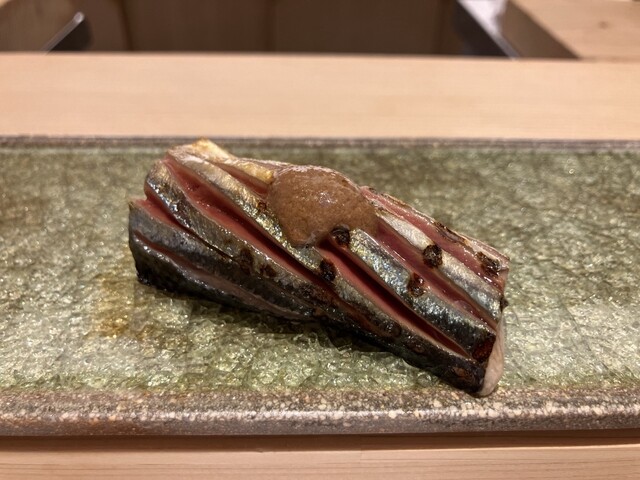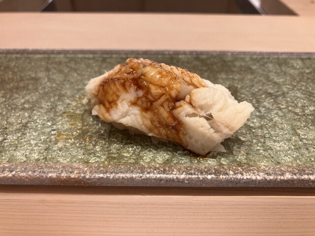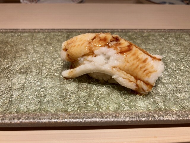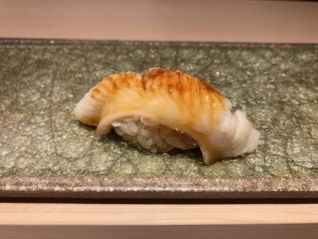 近くにあるので、インスタにネタが入った情報が目に入ってしまうと、予約をしてしまいます。週末は満席の事が多いので、今回はラッキーでした。今日のお目当ては鱚の握りでしたが、おつまみも、鱧や河豚白子の西京焼き、鮟肝など、これも楽しみにしている日本酒と合わせて楽しませていただきました。鱚の握りは食べたことがないと思いますが、淡泊ではなく、しっかりと脂の乗った旨味のあるとても上品な味でした。ひろ海さんの握り、ねたの香りがとてもよく、シャリとの相性も味わい深いのが自分好みのお鮨です。次は昨年食べそびれた新子を期待しています。ご馳走様でした。