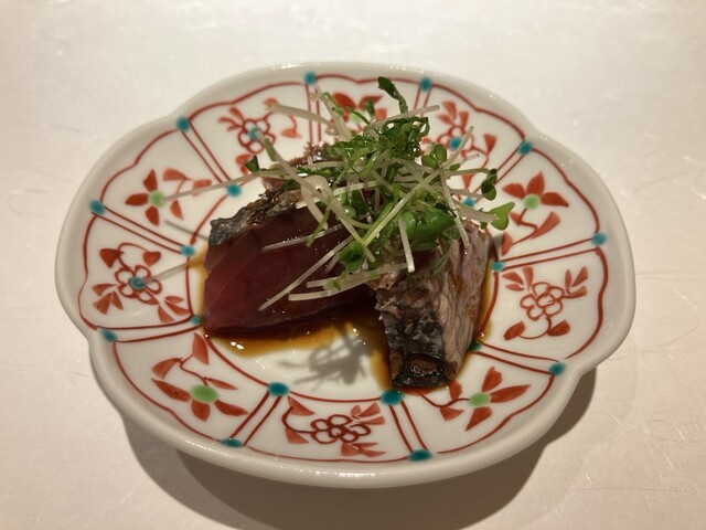 3回目です。お店のインスタで「夏の風物詩の新子今週から行きます!」を見たので行きたかったのですが、8月は訪問叶わず、来年の楽しみにとっておきます。予約時に「今回の海老はお好きなボイル車海老ではなく甘エビとなるかもしれませんがご了承下さい」とのお気遣いの返信が、、もちろんOKBです。・・・今回もおまかせコース花で、いただいた料理とお酒は写真の通りです(コースの終わりに海苔巻き、玉子焼きと味噌汁)。今回は鮑と肝、烏賊の塩辛、秋刀魚の肝と肝三昧でした。日本酒と合わないはずがありません。お酒は大将セレクトが出てきます。秋刀魚は軽くあぶった身に裏ごしした肝が載せられていて、これまで食べた秋刀魚の中で一番の美味しさだと思いました。柔らかく煮た鮑も美味でしたが、残った鮑の肝に酢飯を絡めていただけるなんて、食いしん坊への心づかいが嬉しいです。しめ鰊、走りの筋子や梅干で取った出汁餡の茶碗蒸しなど、とても丁寧で繊細さが閃いていました。小粒のイクラは大振りにはない濃厚で滑らかな楽しい食感、目鯛幽庵焼きに添えられた煮落花生のアクセントと相乗効果、などなど。これからもますます楽しみです。ご馳走様でした。