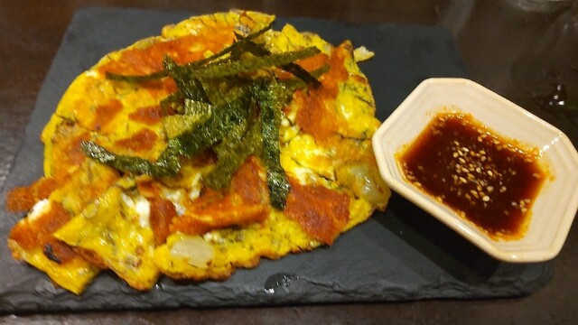もずくチーズチヂミのパリパリとした食感でコレも旨いです。