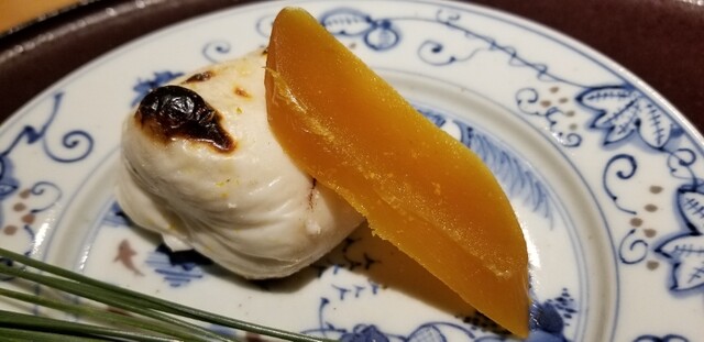 ⑯唐墨餅(長崎県平戸産) 自家製唐墨は塩抜きを徹底され、旨みがしっかり濃く、塩みは微かに感じる程度 上質な唐墨に仕上がってます。 餅に挟むのは冬の定番、当然美味しい!