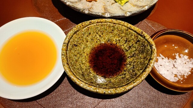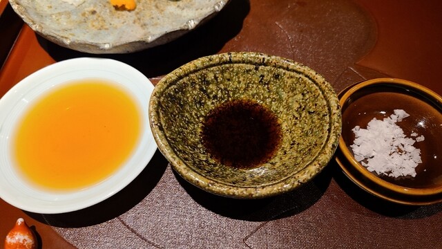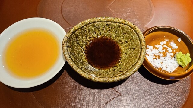 薬味 オリジナル調合の醤油 32年間継ぎ足しのポン酢 真妻山葵(静岡県伊豆天城産) 塩(地中海キプロス産)