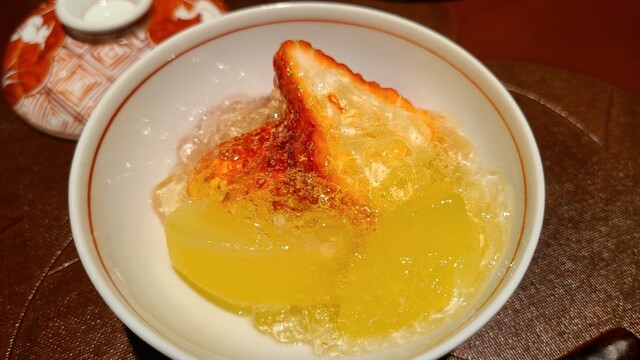⑩氷水〆大根、梅肉載せ(口直し)