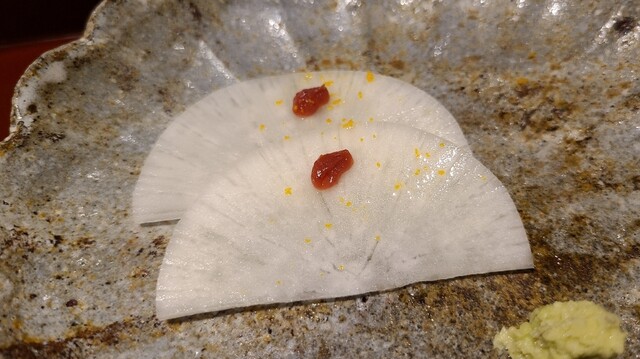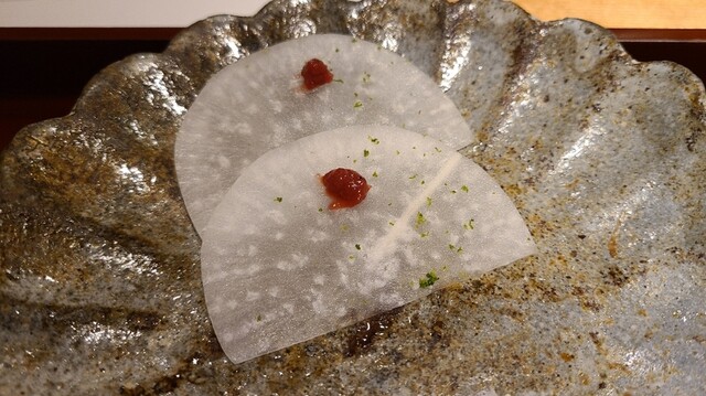 ⑪氷水〆大根、梅肉載せ(口直し)