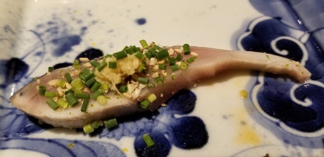 ⑪真鯵(静岡県駿河湾産、サスエ前田魚店・2日熟成) 産卵期は春~夏、旬は秋~冬。 旬でなくとも脂のりもバッチリで、鯵の香りもとても良いですね。