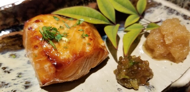 ⑮桜鱒(山形県庄内産)の木の芽焼き 今回も入荷仕立てで熟成されておらず、残念ながら焼きで頂きました。 もちろん焼いても美味しいのですが、桜鱒は、お刺身で頂きたかった。(泣)