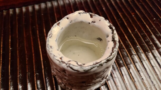 ⑫白子筍(京都府塚原産)の煮汁 筍の薫りが湯飲みから溢れ、筍の甘みがギュッと凝縮し、微かに旨みも感じます 塩を少量入れてありますが、他は手を加えてられておらず、飲み終わった後の余韻もまた素晴らしい