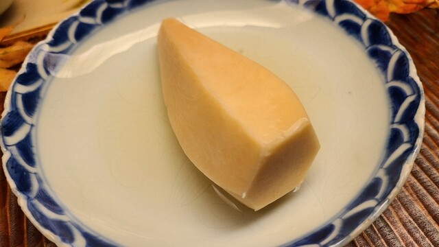 ⑪白子筍(京都府塚原産) 地上に出て陽光を浴びると動物に食べられない様に先端にエグみを集めます 筍は地中にあって軟らかく甘く旨いのですが、毎年腐葉土を積み重ねる必要があり、筍作りは土作りと言われます