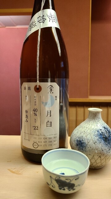 お酒②荷札酒 月白 純米大吟醸 仲汲み(新潟) 米品種:岡山県産山田錦100%、精米歩合:40%