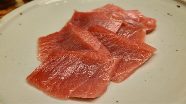 ⑤本鮪(青森県風合瀬産)中トロのヅケ 日本近海の本鮪の産卵期は春~夏、旬は初秋~冬。 中トロを舌の上に載せ体温で温めると脂がすっと消えていきます。 今回で一番オーソドックスなお料理