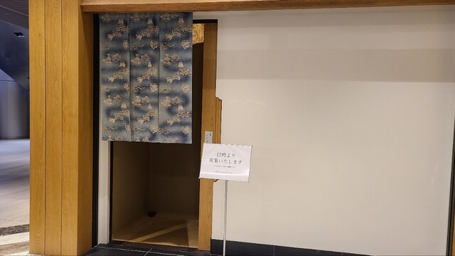 東京ミッドタウン八重洲の3階に出店された「千葉たかおか」さん 近代的なビルの中に突如現れる白壁に木の扉と暖簾 看板は扉に小さく表示 知らない人は何のお店?と訝しがって遠巻きに眺めています
