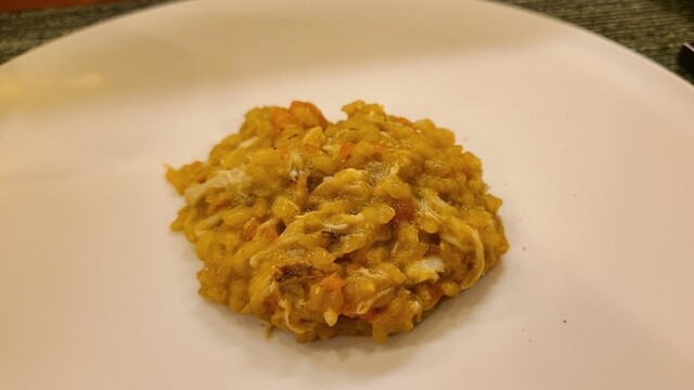 ⑤渡り蟹(愛媛県四阪島産、雌、750g)のリゾット、渡り蟹の蟹味噌&内子載せ