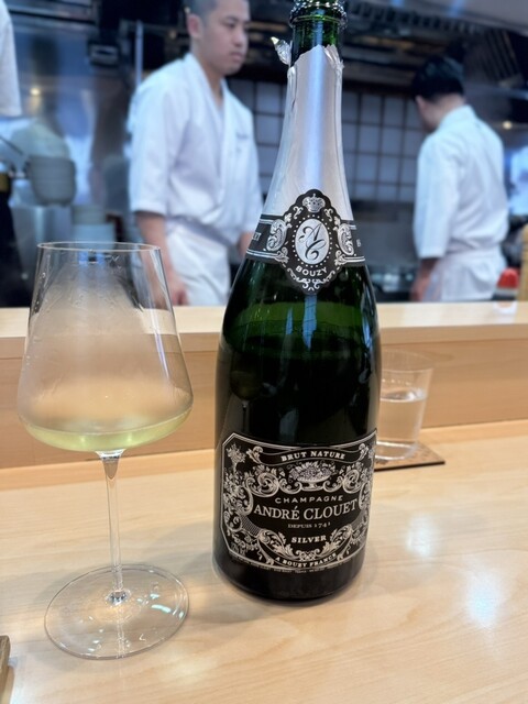 シャンパンはAndre Clouet Silver Brut Nature NVです。もちろん頂くのは初めて。ワイングラスからブワッと香りが広がり宴の始まりの高揚感が爆上がりです。リラックスした雰囲気から次々とラーメンが提供されてまいります。
