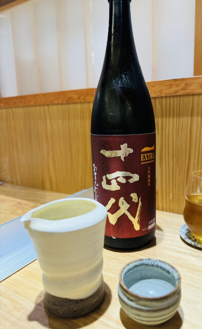 さて、日本酒の王様の十四代は甘みの深さがたまりませんな。言うこと無いですよ。