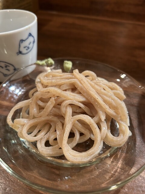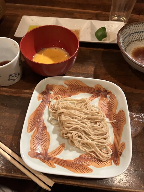 たまかけそばは、つけそば同様の麺で玉子と油を麺に和えながら食べる。