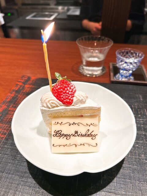 わらび餅で溶けて、ケーキをサプライズで頂き感無量。