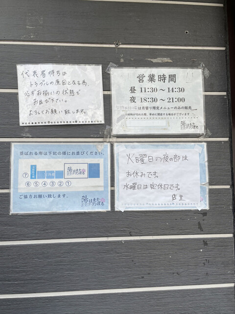 そして今まで定休日無しで火水は限定のみを出す営業をされていましたが、2号店出されたあとは、本店の方は水曜日を定休日に、火曜日は昼のみ営業に変わったようです。