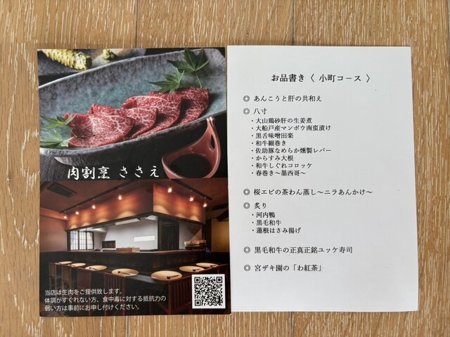 昼は定食で人気の店ですが、夜は完全予約制。今回は肉と日本酒を目当てに訪問。選べるのは二つのコースで、軽い方の「小町コース」でも肉が多いのでガッツリ食べたい人以外は満足できるかと。