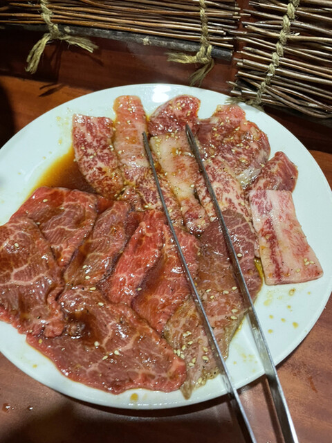 写真は全て1人前で、タンコロ、ハラミ、カルビ、シンシン、ネギタン、カルビクッパハーフ