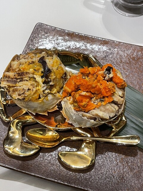 上海蟹(雌)の紹興酒漬け:カンジャンケジャンのような食感で、味は上品に紹興酒が香って最高。