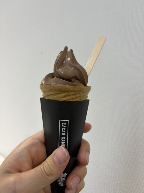 ショコラティエのソフトは高いけど惹かれます。カカオサンパカのソフトは小ぶりな分、まだ手が出やすい価格帯かも。濃厚なチョコレートソフトクリームがサクサクのコーンにマッチしてとても美味しかったです。