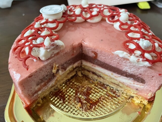 「母の日」のプレゼントで娘からのサプライズプレゼントでした。冷凍ケーキでどんなものかなと思ったんですがびっくりするぐらい美味しかったです。流石、辻口氏のケーキ見た目は勿論だけど切ると何層にもなっていました。冷凍ケーキなので底はタルトになっているから解凍しても水っぽくなかったです。
