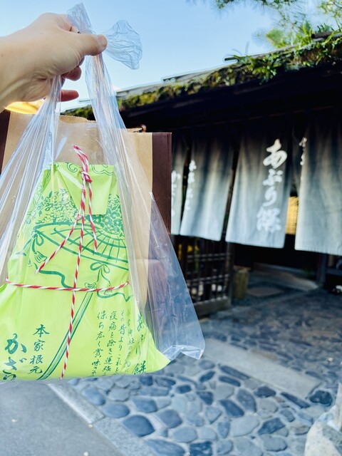 前回はもう一つのあぶり餅屋に行ったので今回はかざりやさんへ。2軒ともはしごする予定が行列!2軒いくのは諦めたので味比べはできず。なんとなく記憶を辿ると、かざりやさんの方が甘めな気が…気のせいかな。どち...