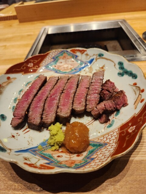 ディナーを予約して伺いました。今回はアラカルトで和牛とアスパラのカルパッチョ、シャトーブリタン、シャトーブリアン、ハラミ、赤身、ロース、タンシチュー、冷やしラーメンを注文していただきました。店長さんの素材の丁寧な説明を聞きながらの食事は楽しかったです。アスパラはアスパラ王子さんが作っているらしく、今までのアスパラの中で群を抜いて美味しかったです。出てくる肉も今まで食べた肉達の遙かに群を抜いて柔らかく、肉の味、全て凄かったです。