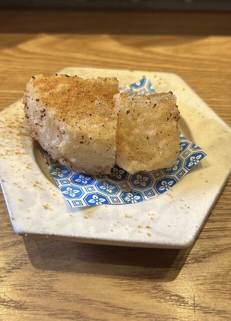 カラスミ大根 下茹した大根が柔らかい。表面はカリッと揚げられている。カラスミと大根って合うんだね✨