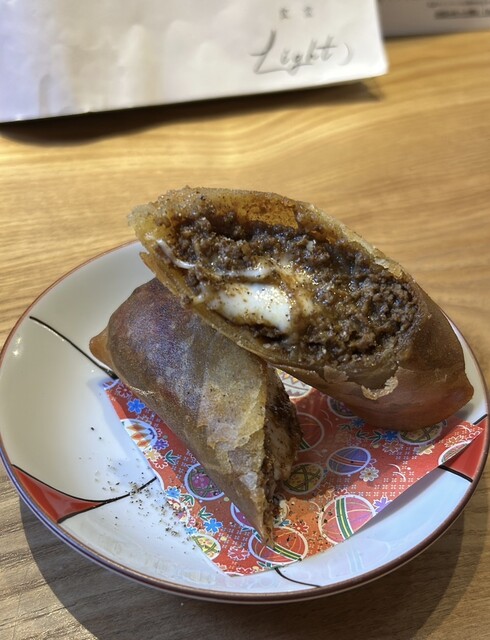 Lightでは不動の1番バッターを担っているんだと思う。皮目を香ばしく炙られた鯖は旨みが増していいね!中に忍ばせた大葉と昆布の佃煮がアクセントになってビールがすすむ♩ ܸ
