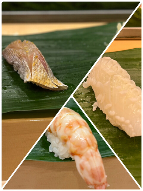 おまかせ7000円。金目鯛、のどぐろ炙り、赤貝。出だしから豪華なラインナップです。金目鯛が特に良かったです(╹◡╹)(╹◡╹)