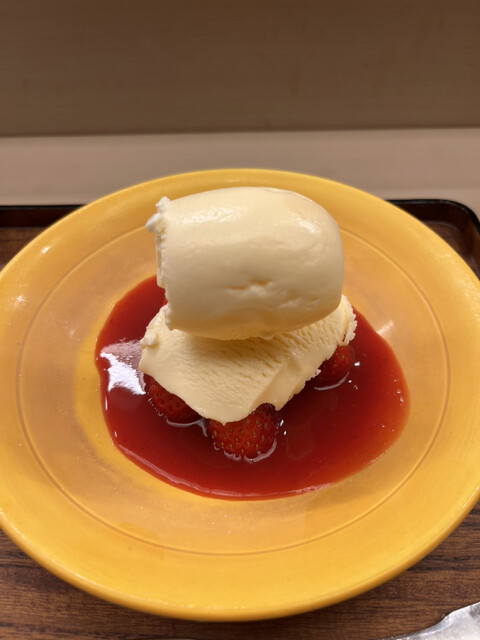 ミルクアイスクリーム 苺ソース