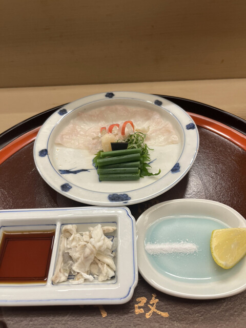 昼懐石15730円。てっさ。包丁技が活きています。