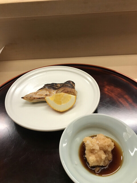 昼懐石13310円。からす鰈唐墨粉焼き。しっとりと水々しさも残る焼き加減も良く、とても美味しくいただきました(╹◡╹)。唐墨粉は不要かも(笑)