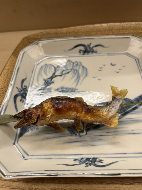 昼懐石13310円。鮎塩焼き。今日の鮎は、今年一番の鮎です(╹◡╹)(╹◡╹)。香り、肝の味わい…今すぐ食べたい(笑)