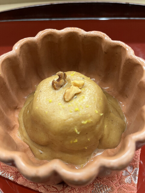 昼懐石13310円。胡桃豆腐。濃厚な胡桃の旨味と爽やかな葡萄の甘さがマッチして、とても美味しくいただきました(^。^)