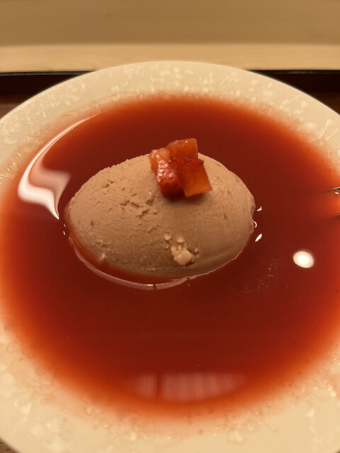 昼懐石15730円。苺アイス。苺ソースに苺アイスのマリアージュです(╹◡╹)