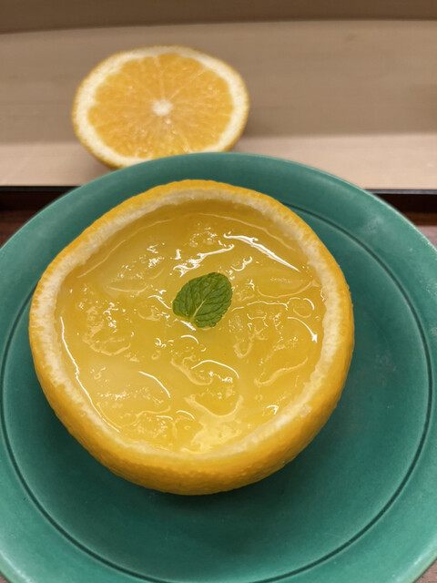 昼懐石15730円。八朔杏仁豆腐。八朔のジュレと杏仁豆腐がマッチしています(╹◡╹)(╹◡╹)