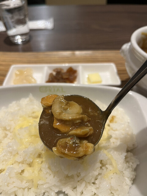 牡蠣カレー1600円。じゃがいもなしでお願いしました。濃厚なカレーソースがチーズライスとマッチして、とても美味しかったです(╹◡╹)(╹◡╹)。シーフードカレーの方が好みでした(笑)
